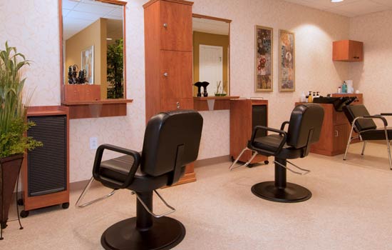 • Spa-like bathing suite and on-site beauty and barber shop services