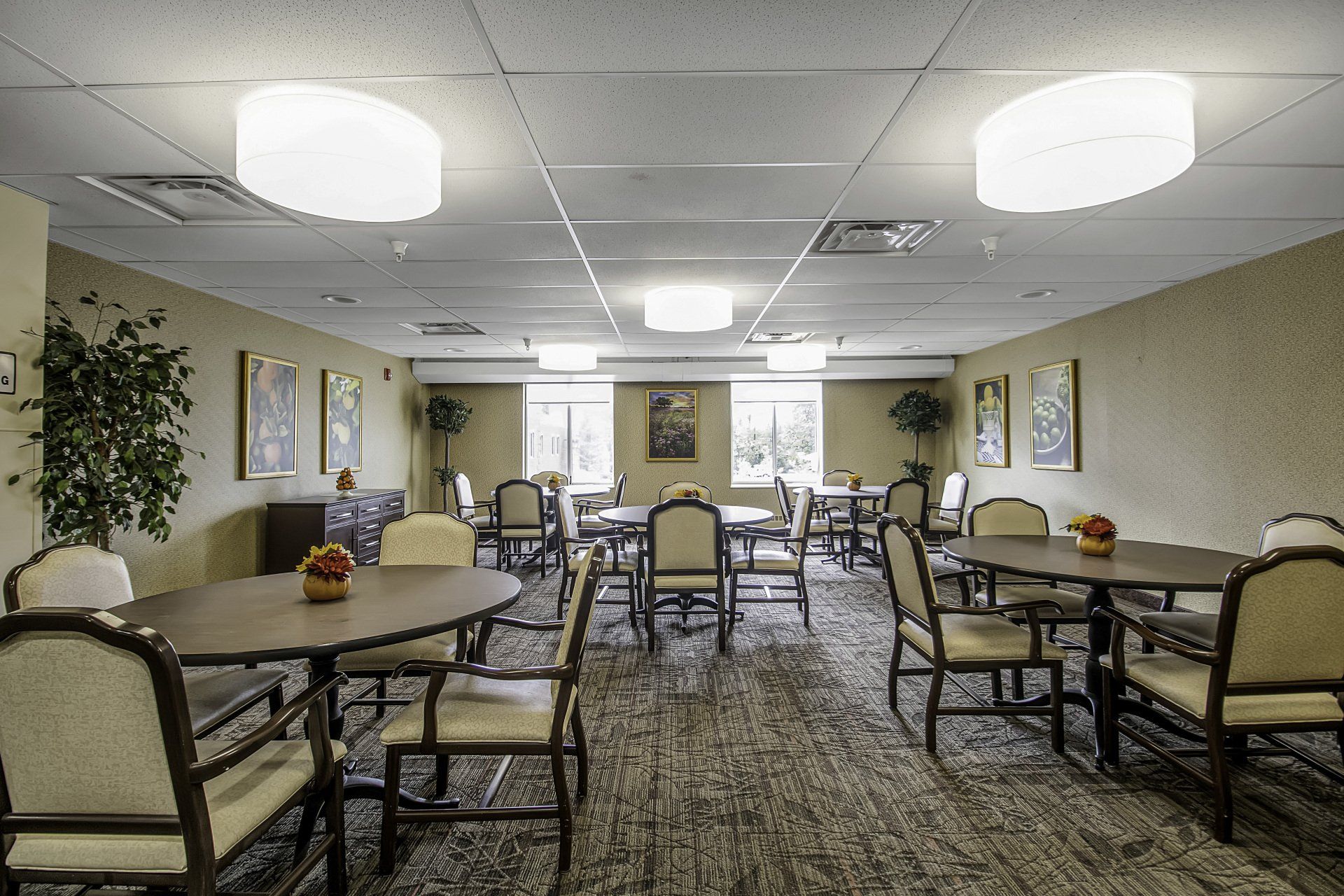- Appetizing menu of nutritious meals served restaurant-style in a lovely formal dining room; tasty snacks available throughout the day.